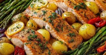 🌿 Introduction This dish is the epitome of balance and simplicity. A single sheet pan carries tender salmon fillets, roasted…