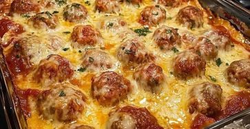 Cheesy Baked Meatball Casserole Ingredients: For the meatballs: 1 lb (450g) ground beef (or half beef + half pork) ½…