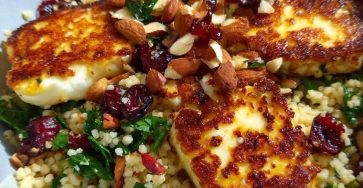 Halloumi & Cranberry Couscous Salad with Mint-Lemon Dressing